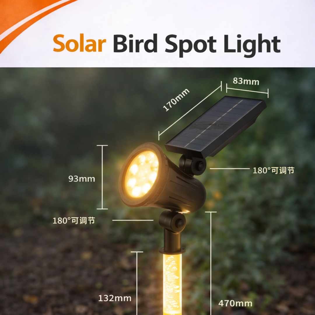 Illuminate your outdoor walls with the Solar Bird Spot Wall Light (Y-26). Choose between warm white for